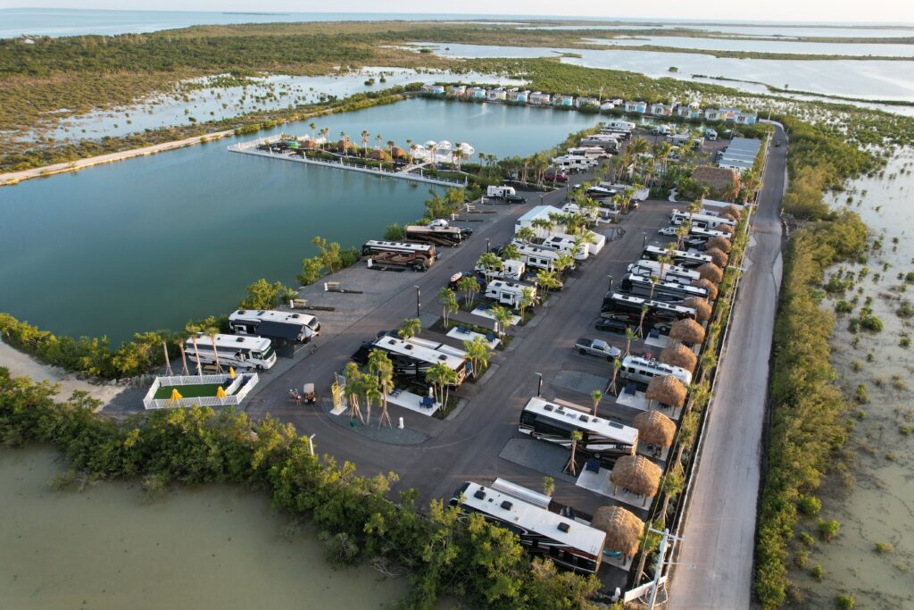 Sugarloaf Key RV Resort & Cottages, formerly Sun Outdoors Sugarloaf Key, delivers a quintessential Florida Keys experience. Set on a serene seven-acre saltwater lake 15 minutes from Key West, the resort features kayak and paddleboard rentals, a heated swimming pool, tiki bar, fire pit lounge, and a mix of RV sites and vacation cottages that offer relaxed luxury in a tropical setting.
